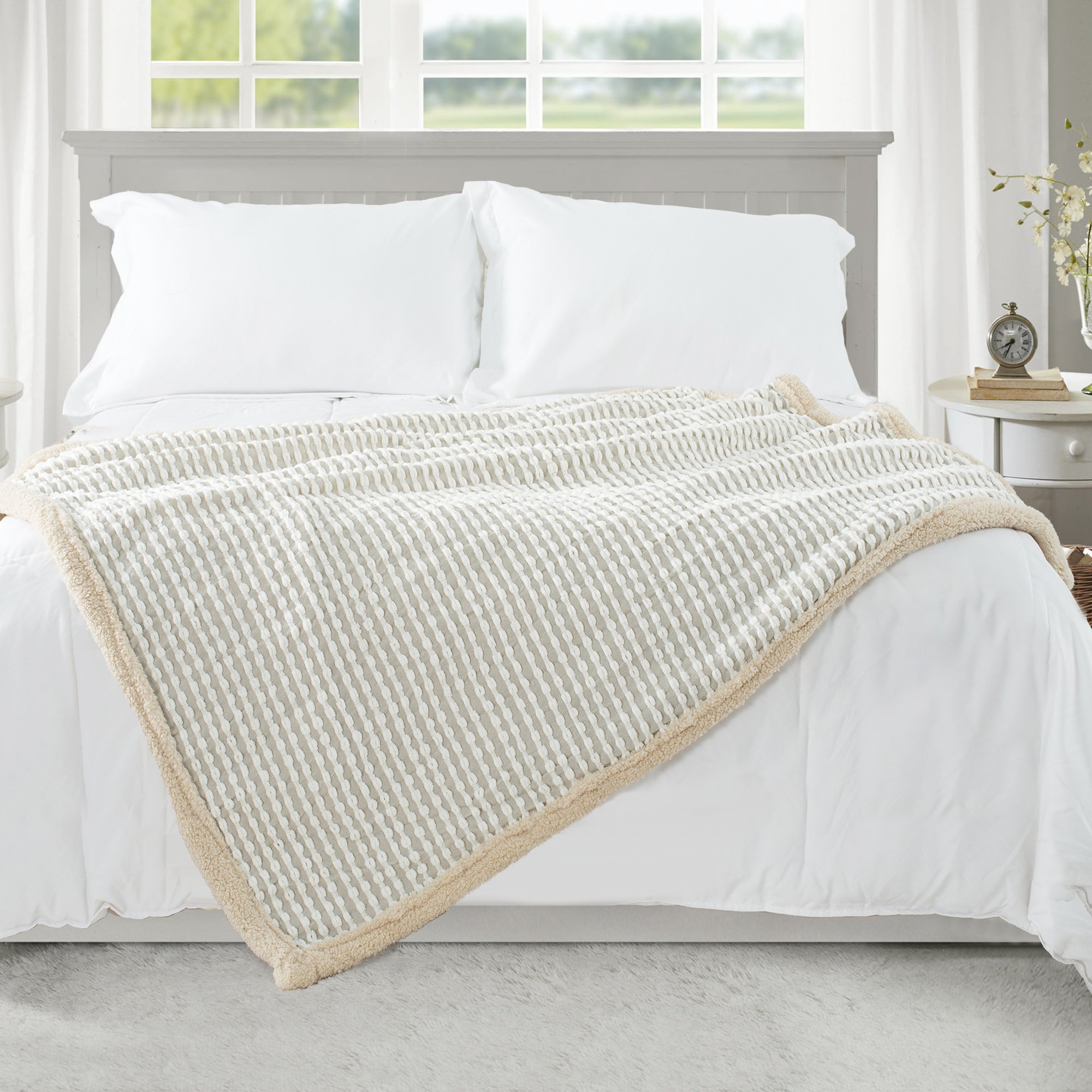 1.Stylish & Reversible Warmth: The perfect combination of beautiful striped design and inside soft warm sherpa fleece, make this blanket furry, plush,and ultra-cozy for stylish comfort all year round.