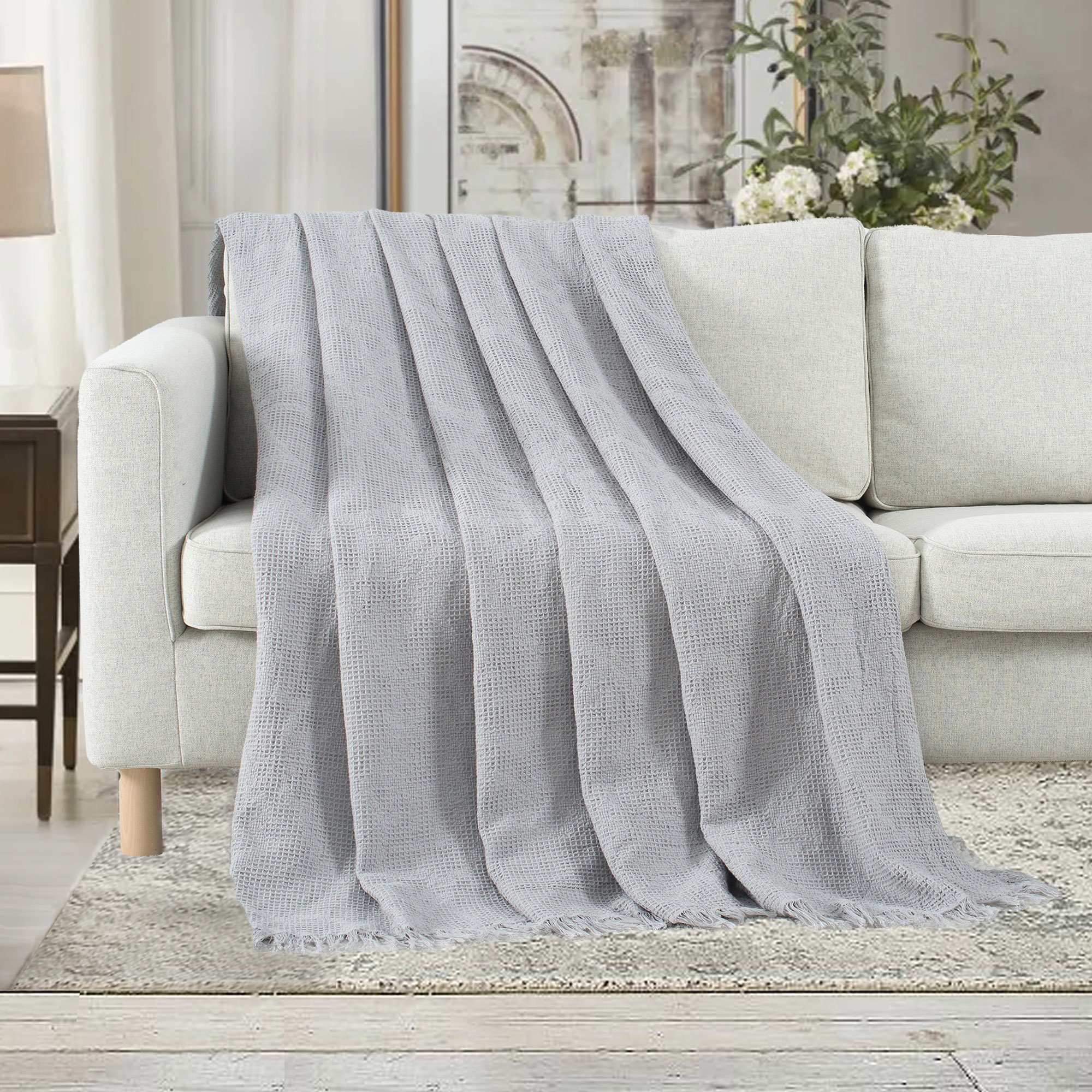 VERAMUSE 100% Cotton Throw Blanket Weave Waffle Breathable Thin Blankets for Summer